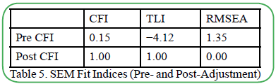 In contrast, the model with added error covariances showed an exceptionally high fit, which may suggest a risk of overfitting [23-27]. The fit indices, with a CFI of 0.950 and RMSEA of 0.051, indicated the need to cautiously consider generalizability to realworld data. If overfitting occurs, generalization to new data becomes challenging; therefore, it is important to use cross-validation by splitting the data into multiple parts to reduce the risk of overfitting. Future studies should verify these results using other datasets to strengthen the generalizability of the model.