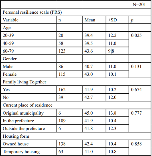 Citation: Yasuda, M., (2025). Factors Related to Personal Resilience Scale of Local Residents: Experiences of Long-term Evacuation from Natural Disasters. J Comp Nurs Res Care 10(1): 208.
