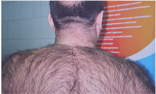 Herein was presented 43-year-old man from outpatient clinic who complained of a sudden skin rash that appeared 3 days ago. The following data were significant in his medical history: alcoholism, high blood pressure, hyperlipidemia, poorly controlled and unregulated diabetes type 2, arthritis urica. Type 2 diabetes and hyperlipidemia were diagnosed 2 years ago. According to the endocrinologist’s medical documentation, the glicemic values were up to 8,1 mmol/L, triglicerides 11, 4 mmol/L and holesterol 6,1 mmol/L. The drugs, he was treated with, include simvastine 20 mg daily, atenolol, NSAIDs. Antidiabetic diet, diet for hyperlipidemia and hyperuricaemia were also advised. The patient did not mention similar metabolic diseases in the family, especially elevated cholesterol levels (VLDL) since childhood and cardiovascular attacks in young family members. He stated that the rash was preceded by stress and the consumption of large amounts of alcohol. On examination, the patient was obese with pale-erythematous to erythematous-brownish papules 1 to 5 mm in diameter on the neck (Fig.1a), trunk and extremities (Fig.1b, 1c), more on the extensor surfaces. These papules were not accompanied by subjective symptoms such as itching, pain, burning. The patient complained of dull pain in the epigastrium. Also, swelling with pain in the right toe was noticed. Laboratory analyses were as follows: SE 10 mm/h (0-20 mm/h), complete blood count without pathological changes, triglycerides 97.1 mmol/L (<1,70 mmol/L), glucose 12 mmol/L (3,9-6,1 mmol/L), cholesterol 23.5 mmol/L (0,00-5,20 mmol/L), acidum uricum 665.9 mmol /L (210-452 mmol/L). In the urine sediment, proteinuria+, hyaline cylinders. Histopathology, staining with hematoxylin and eosin (H & E ), revealed foamy histiocytes in papillary and reticular dermis and extracellular loose lipids that indicated the diagnosis of EX (Fig.2) (H & E, ×100). Ultrasound of the abdomen didn’t show pathological lesions. The patient was hospitalized in the Clinic for metabolic disorders.