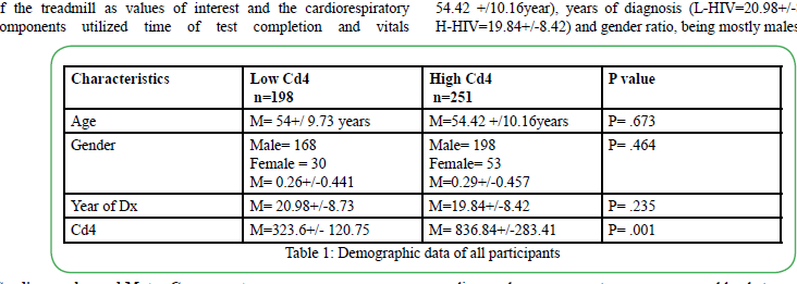 To ascertain the association mentioned above, to physical and fitness outlines and the immune profile, this work divides Cd4 counts into two ranges: 1) 0-500, and 2) 501-above.