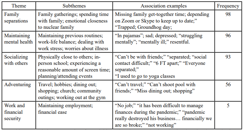 Table 1: Associations to Drawings for Activities Enjoyed Pre-Pandemic and Missed During the Pandemic