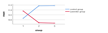 For physiological parameters (table 3), repeated measures ANOVA demonstrated significant time by group interactions across all indicators. Systolic blood pressure (SBP) significantly decreased in the lavender group from 123±8.9 mmHg to 102±3.5 mmHg over 8 weeks (F = 19.03, p < .001), whereas the control group remained relatively stable. Diastolic blood pressure (DBP) also significantly reduced in the lavender group from 77±6.6 mmHg to 59±5.1 mmHg (F = 12.92, p < .001), while minimal change was observed in the control group.