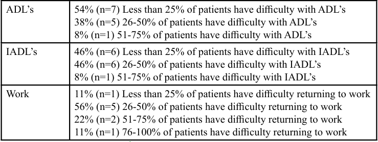 Thus, the purpose of this study is to gain a better understanding of: (1) the impact of cancer on an individuals’ ability to engage in their daily occupations (ADLs, IADLs, Work, Leisure, and Social Participation) and (2) the primary care provider’s knowledge and understanding of the impact of cancer interventions on the survivor’s ability to engage in their daily occupations as well as the provider’s decision to refer/withhold referral to occupational therapy.