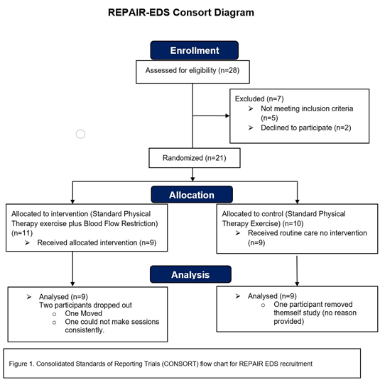 The innovative potential of this study lies in its application of BFR to a population historically underserved by traditional exercise paradigms. By enabling EDS patients to engage in low-intensity exercises that effectively promote muscle strength and function without compromising joint integrity, REPAIR-EDS holds promise for improving long-term outcomes and enhancing quality of life. This research represents a critical step toward addressing the unmet needs of individuals with EDS, offering hope for more effective and sustainable management strategies.