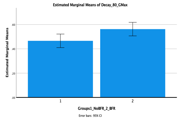 Statistical analysis of the MANOVA revealed that decay at 80 bpm for the GMax and inter peak for BFR was at 140 bpm (p=.013) for the biceps femoris was also significant at 80 bpm (p=.045).