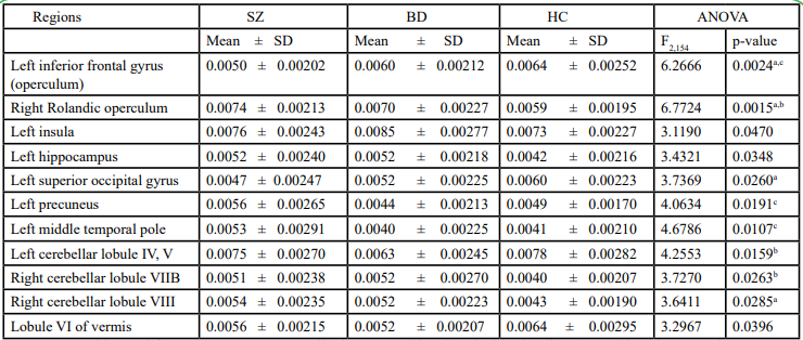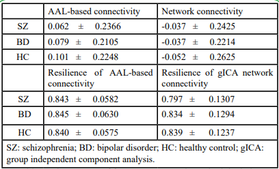 Table 6. Different mean network connectivity between schizophrenia, bipolar disorder, and healthy control