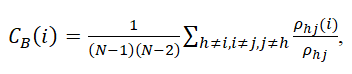 where ClR and LR are the clustering coefficient and characteristic path length of the random network, respectively. Betweenness centrality is a measure of the number of shortest paths between all other node pairs in the network passing through it. Brain regions with high centrality are crucial for efficient communication. To compute the betweenness centrality of a node i, the proportion of the shortest paths between nodes j and h that pass through I were obtained using
