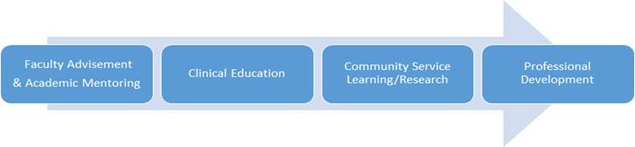 The elements of professional development are multifaceted and requires mentorship and advisement. Professional programs of health sciences commonly assign students a faculty advisor that are the starting point to developing a relationship with the student. Basic information related to study habits, commitment, and time management are discussed as the relationship between faculty member and student begins to develop. Faculty advisement is then paired with academic mentorship. Faculty members encourage students to seek out mentors that they may have previously known or can make mentor recommendations to students. As students matriculate through professional programs other opportunities arise like attending professional conferences, where students are able to meet other healthcare professionals and to network with potential employers. Clinical education plays a major role in the professional development of students, as students are assigned clinical instructors to assist in their professional development. The planning and coordination of community service-learning events gives students the opportunity to engage with members of the community and to use skills learned to further bring about professional development. Research also engages students in the professional development of becoming collaborative healthcare team members in an interprofessional environment where patients will receive care. Faculty advisement, academic mentorship, clinical education, community service learning, and research engagement contribute to the overall professional development of student healthcare professionals.