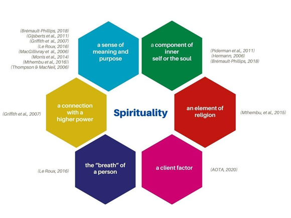 According to the OTPF, occupational therapists can address spiritual needs. However, spirituality is likely not often included OT practice due in part to the lack of common spiritual language, reported unawareness of OT’s role in spirituality in practice, lack of perceived therapist’s skills to have spiritual conversations owing to distress, and alleged inability to receive payment for spirituality treatments [5].