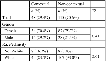 In assigning colors to contextual and non-contextual questions, 48 participants were assigned to contextual questions and 115 to non-contextual questions. No significant differences were found between the groups.