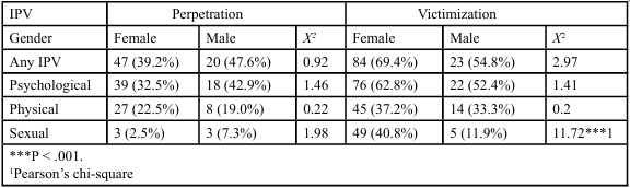 This study examined whether self-reported IPV perpetration and victimization rates were different between male and female college students. While perpetration rates were not different between men and women, victimization rates were much higher among women than men for sexual violence, which is consistent with several prior studies that used national data [20,45].