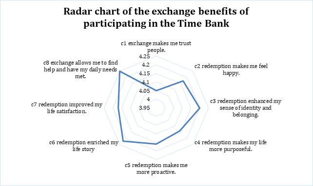 Table 3 and Figure 1present the frequency distributions and radar chart for perceived exchange benefits.